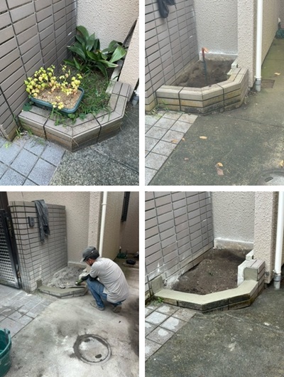 新車は車幅が広くなるそうで、40cmブロックひとつ分縦に撤去。